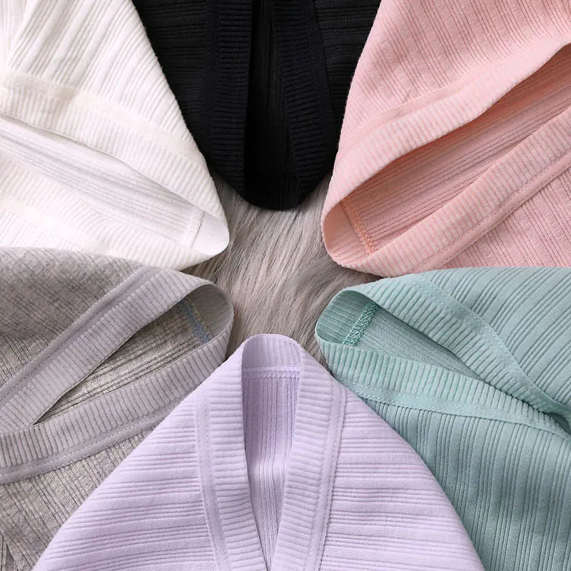 Soft and comfortable, Cotton high waist panties featuring a flattering rib-knit texture and delicate lace trim along the leg openings. Available in a wide range of essential and pastel colors, including White, Green, Pink, Gray, Black, and Violet. Perfect for all-day comfort and a cute, feminine foundation.